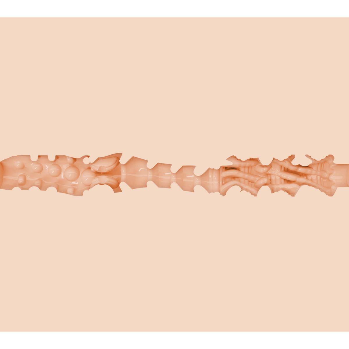 Invändigt gömmer sig ett sinnrikt utformat texturmönster med varierande kammare, räfflor och åtsittande kanaler som tillsammans skapar en levande, responsiv känsla. Den dynamiska strukturen anpassar sig efter varje rörelse, oavsett om du är ute efter långsamma, njutningsfulla stunder eller mer intensiva sessioner. Tillsammans med ett bra glidmedel blir varje drag en ny upptäckt – som en erotisk dans mellan dig och leksaken.