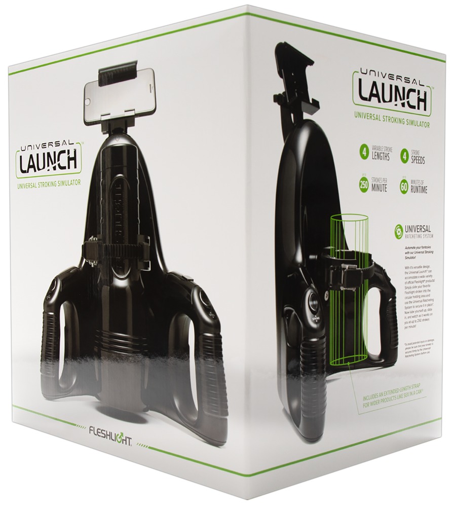 För den helt automatiska handjobs-upplevelsen! Låt oss introducera Universal Launch, en helt automatisk masturbatoradapter som kan kombineras med vilken Fleshlight-masturbator som helst (ej inkluderad). Masturbatorn placeras enkelt och säkert i Universal Launch och kan sedan bekvämt röra sig upp och ner automatiskt med bara ett knapptryck. Med 4 olika stötlängder och 4 hastigheter, inklusive max. 250(!) stötar per minut, kan du njuta av en varierad och intensiv njutning som aldrig förr.