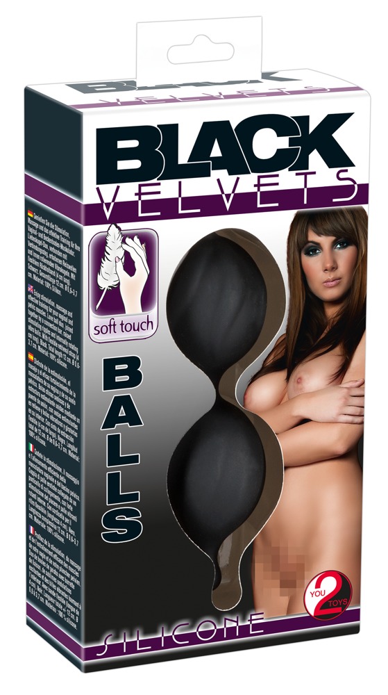 Sammetslena kärlekskulor med en förbindelse, stimulationsvågor och vibrokulor som roterar inuti. Med flexibelt band (4 cm långt). Svart. Total längd: 16 cm, Ø 0,6 till 3,7 cm. Material: 100% silikon. Ftalatfritt.