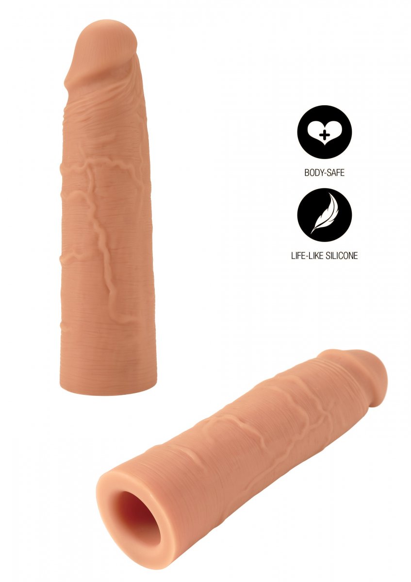 Med en total längd på 18 cm och en diameter på 4,5 cm ger denna sleeve en markant uppgradering av både längd och omfång. Den är perfekt för dig som vill utforska nya nivåer av penetration eller för dig som vill ge stöd vid erektil dysfunktion. Resultatet blir en djupare, fylligare känsla och mer intensiva orgasmer för er båda.