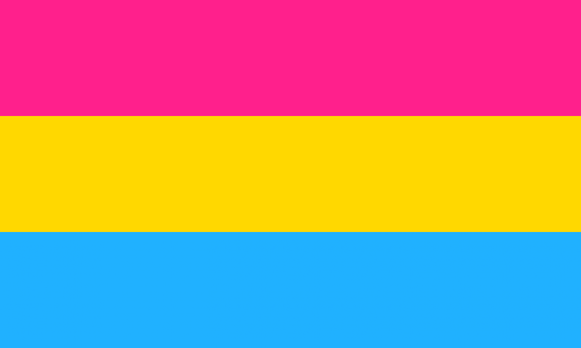 Pansexuella prideflaggan (känd från 2010) kopplas ofta till attraktion oavsett kön, medan bisexuella flaggan (1998) togs fram för att öka synlighet för bisexuella. I färgtolkningar av panflaggan nämns ofta cyan, gul och magenta. Bisexuell flagga använder magenta, lila och blå med tydligt beskriven symbolik kopplad till attraktionsriktning.