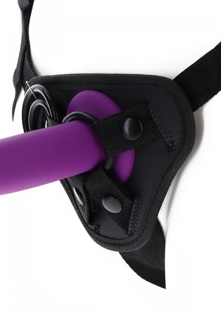 Det här är en perfekt sele för dig och din partner att utforska nya sätt att njuta tillsammans. Den är vadderad framtill för bästa comfort. Med de olika storlekarna på silikonringar kan ni enkelt anpassa sele till olika dildos för att passa era önskemål. I paketet får du med dig 3 olika ringar med storlek 3,5cm, 4,5 cm och 5cm som är tillverkad i silikon. Denna harness har banden runt benen till under rumpan så den sitter riktigt bekvämt och skär inte in i slidan eller runt analen, detta gör också att du är öppen för penetration för egen del i både slida och anal. Andra remmen sitter bekvämt runt höften så du har full kontroll över din strapon. Det ingår inte en dildo i detta paketet, endast ett harness. Du finner alla passande dilon med sugkopp som bas här.